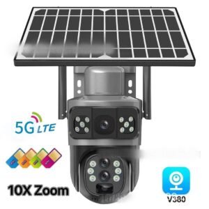 كاميرا مراقبة بالطاقة الشمسية تدعم شريحة SIM CARD الكاميرا 2 في 1 الاولي دوران 360 درجة الثانية ثابتة MP8 5G