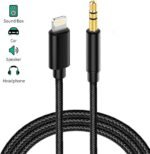 متوافق مع ايفون 14 13 12 11 برو XS XR X 8 7 6 ايباد ايبود لستيريو السيارة والمنزل ومكبر الصوت وسماعة الراس – اسود